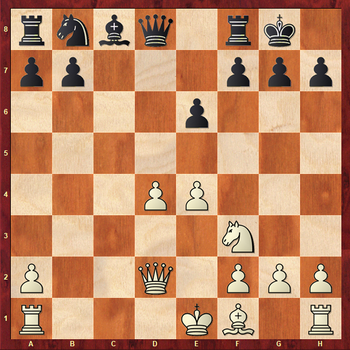 11.a4!? Относительно редкая концепция. Белые планируют после b6 сыграть а5 и затем атаковать пешку черных на ферзевом фланге, разменявшись на b6. Обычные продолжения: 11.Bc4 или 11.Rc1